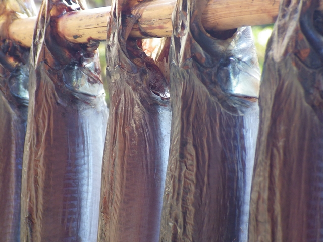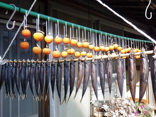 軒先にて、お日様の光と、そよそよとなびく北西風の力をお借りして、
