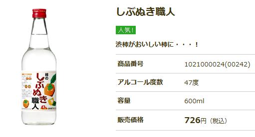 アルコール度数47° 柿の渋抜き専用アルコール 宝酒造「しぶぬき職人」