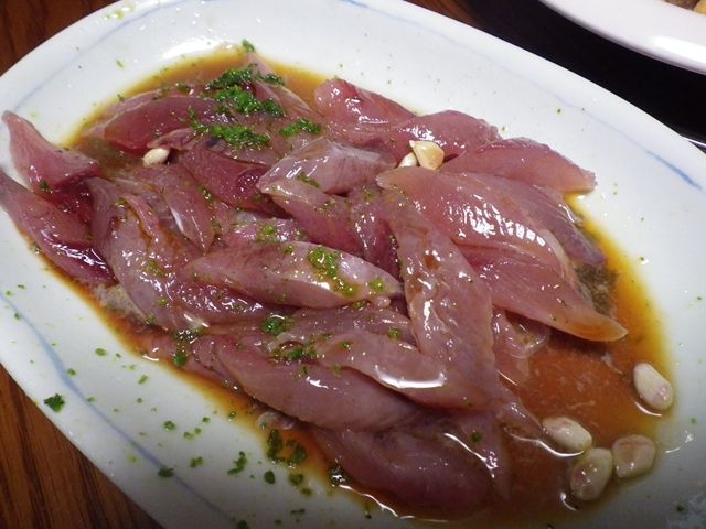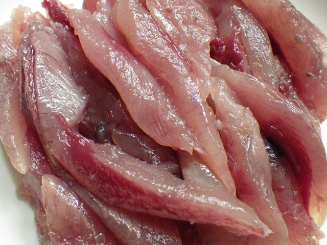 1匹で6切れ、画像は7匹分の刺身です。