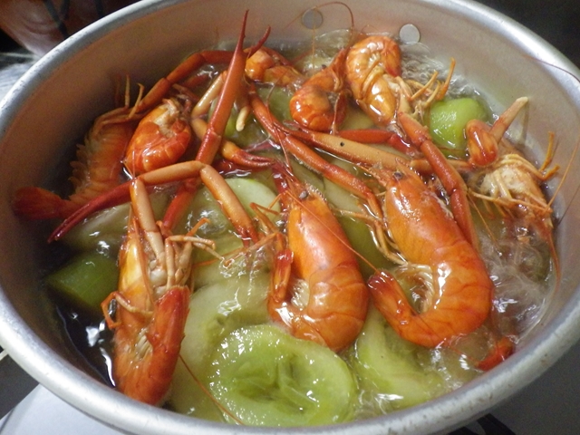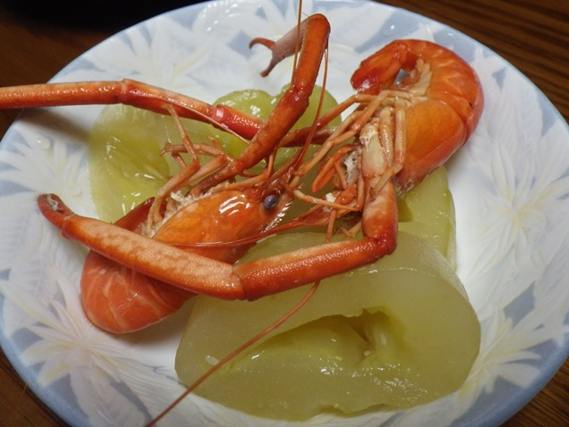 エビと一緒に煮たキュウリを、