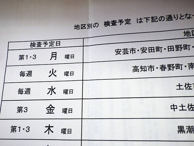 でもって、検査予定日は毎週火曜日だけなの?