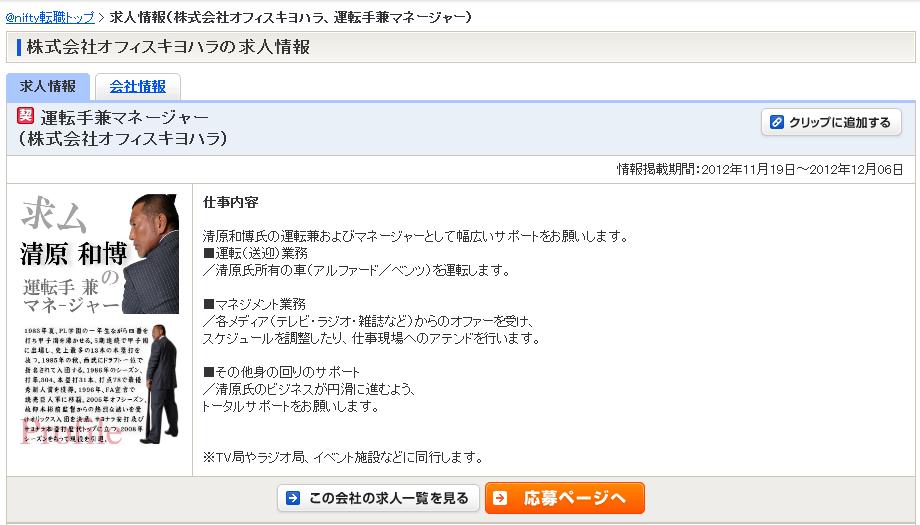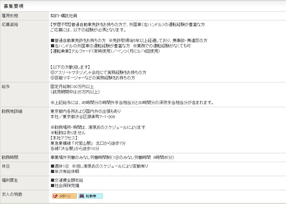 週休1日 ※但し清原氏のスケジュールにより変動有り??