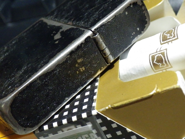 ちなみに、上に乗ってる ZIPPO は、第二次世界大戦当時の1941年製造、