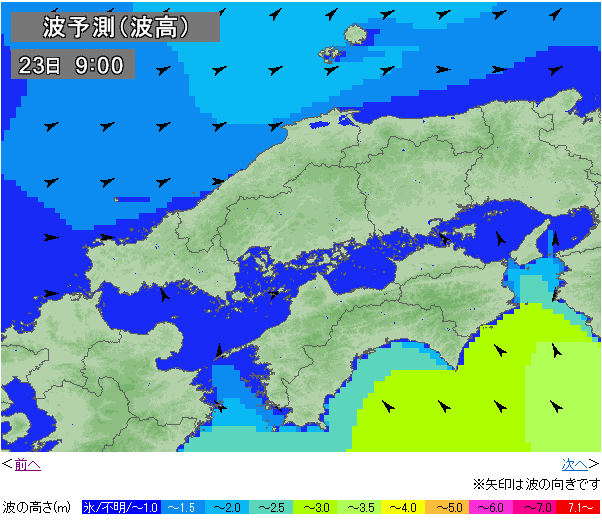 明日日曜日は、土佐湾全域で5mの予報