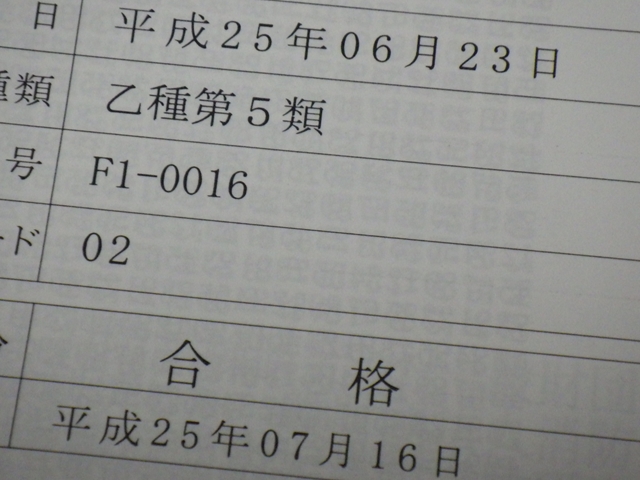 6月23日に受験した、乙種第5類