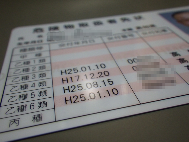 危険物取扱者の免状が届いていました。