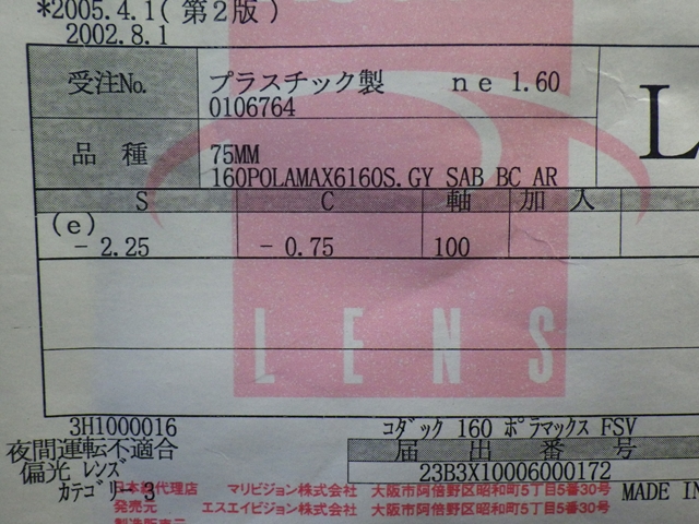 なので、調子に乗って買ってしまった「度付偏光サングラス」の、