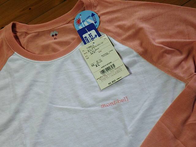 サーモンピンクのモンベルTシャツ、サイズXL・・・
