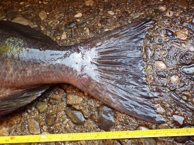 やっとのことで、タモに収まった尾長・・・