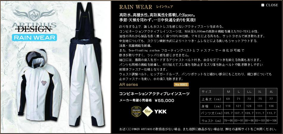 オーナー ARTINUS コンビネーション アクティブ レインスーツ