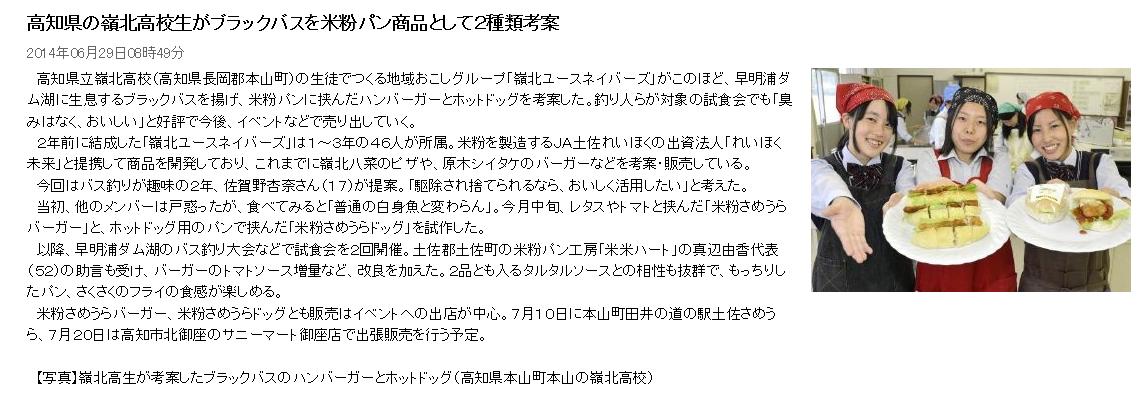 「高知県の嶺北高校生がブラックバスを米粉パン商品として2種類考案 」