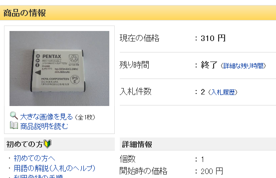 予備バッテリーを、ヤフオクにてGET!