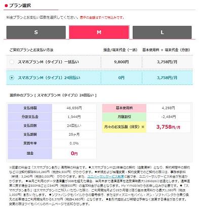 AQUOSキャリアは、24回払いで月々1,944円ながら、