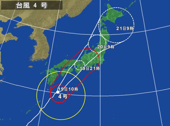ただ今、台風4号は高知に向かい一直線!