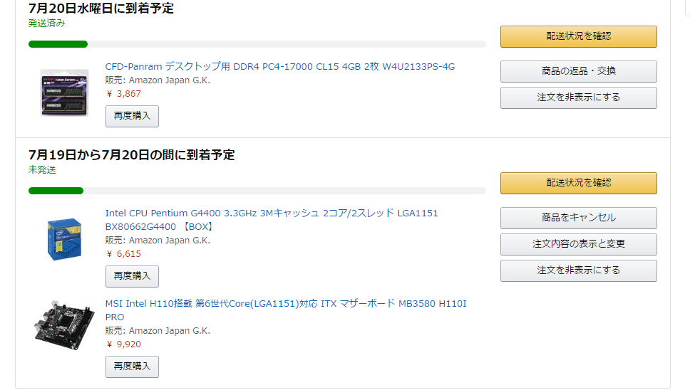 CLが結構低いですが、使うCPUがG4400なので気にしてないです。