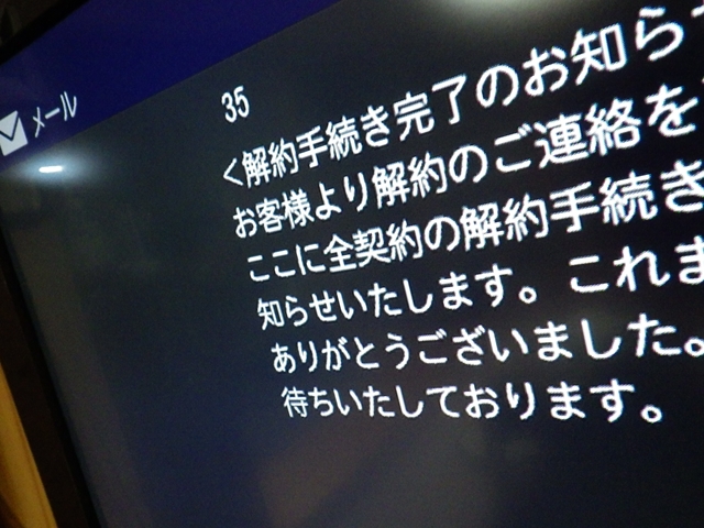 ご覧のとおり、スカパー・・・解約しました。